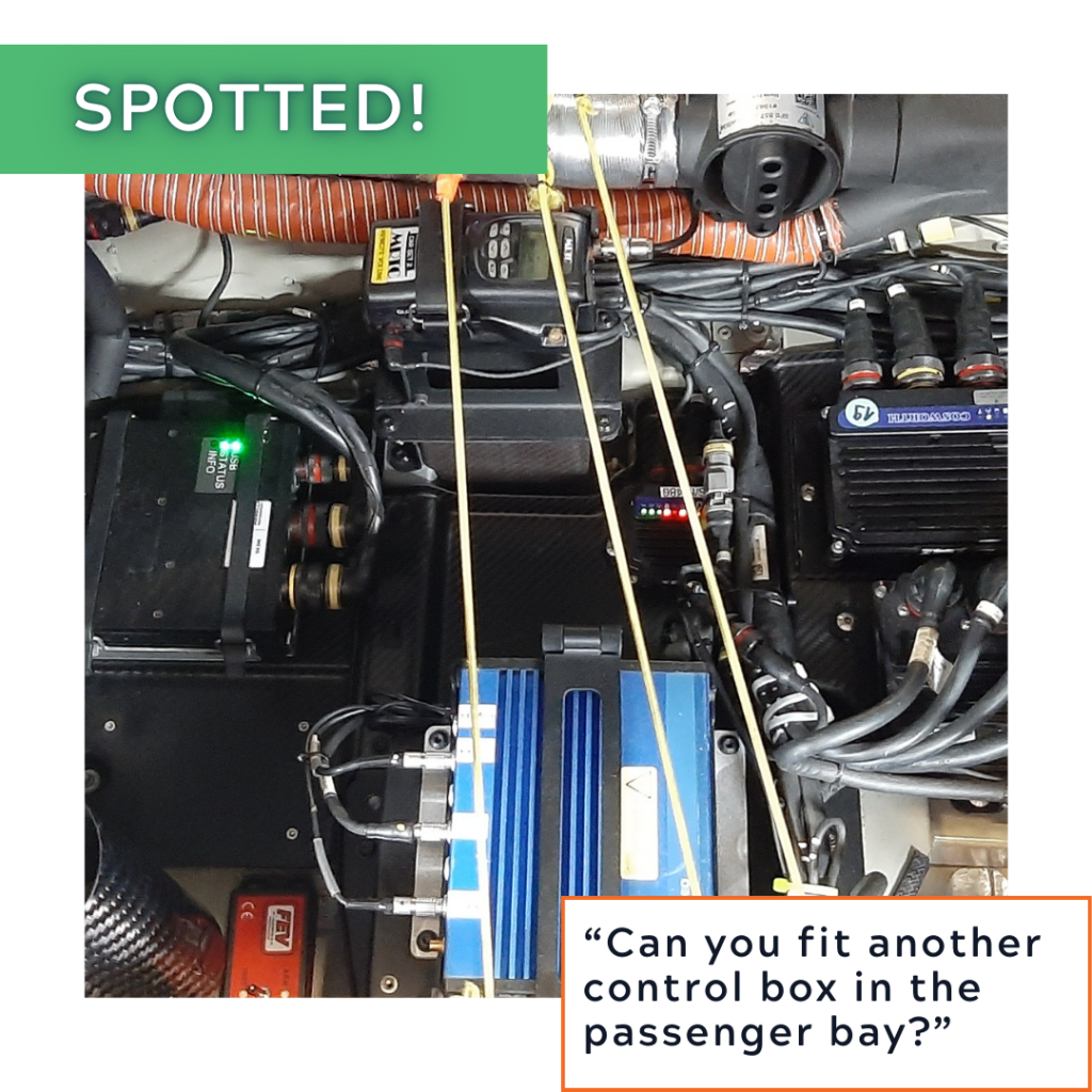 We are out again for customer field support and looking at other vehicles nearby… certainly, no fun trying to fit another control box into this GT car’s passenger bay!